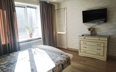 В квартире четыре спальных места. Две двуспальных кровати. Есть скоростной вай-фай. Восьмой этаж девятиэтажногодома, прекрасный вид из окна. Лифт. Отопление центральное. Бойлер тоже есть.
